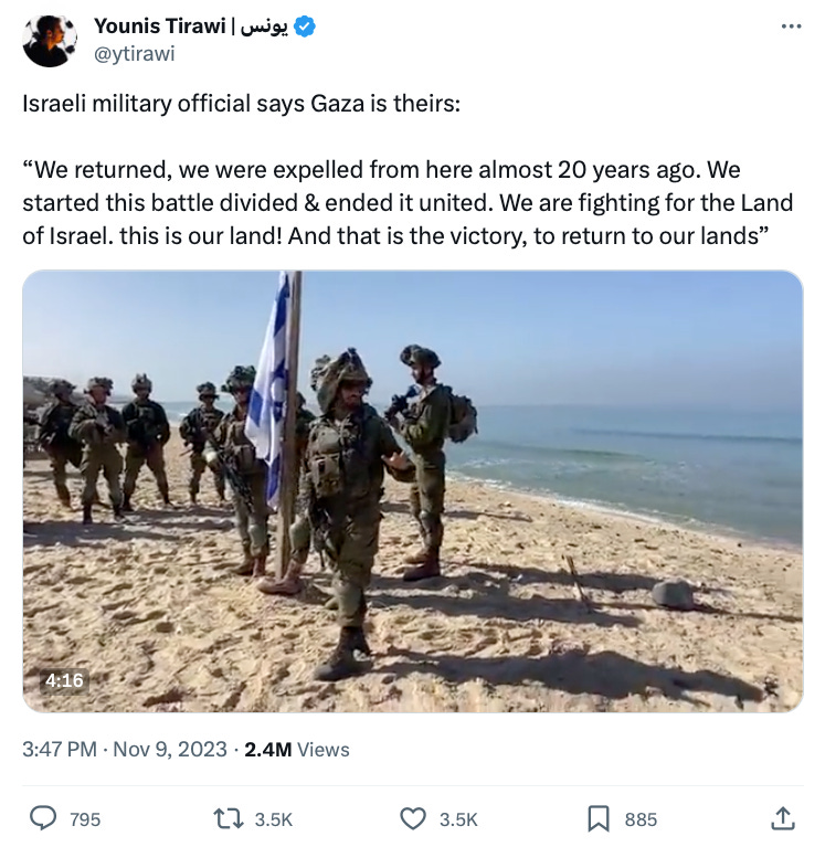 The first glaring deception is Washington’s insistence that Israel avoid “reoccupying” Gaza. Blinken wants us to believe that the strip’s occupation ended long ago, when Israel dismantled its Jewish colonies in 2005 and pulled out the soldiers who protected the settlers.