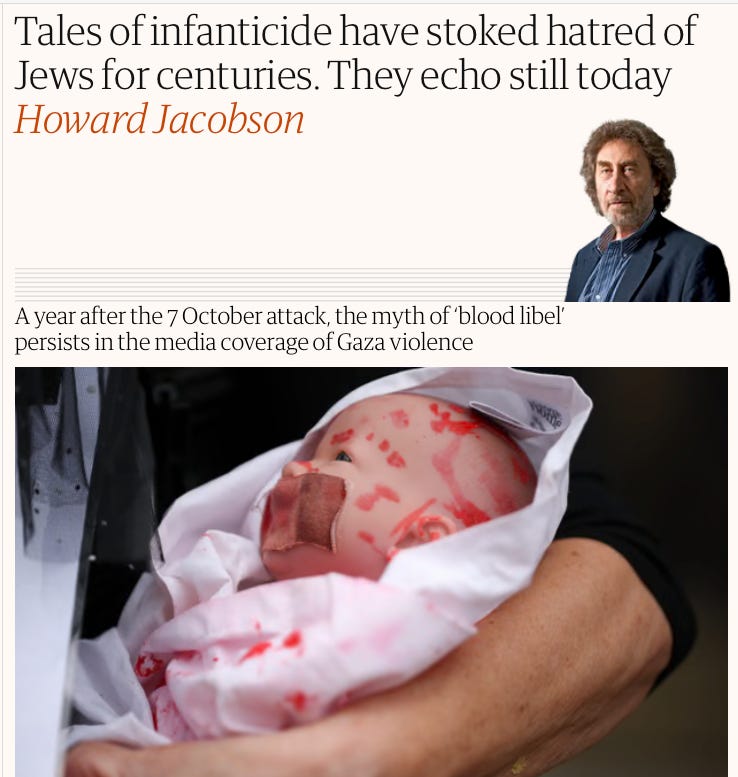 I can't put this strongly enough. Howard Jacobson's article in today’s Observer newspaper may be one the vilest pieces of journalism published in Britain in living memory, arguing that any reporting of Israel's documented slaughter of many thousands of Palestinian children in Gaza is a "blood libel" and antisemitic. It is pure genocide apologism.